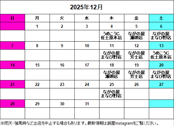 12月の出店予定